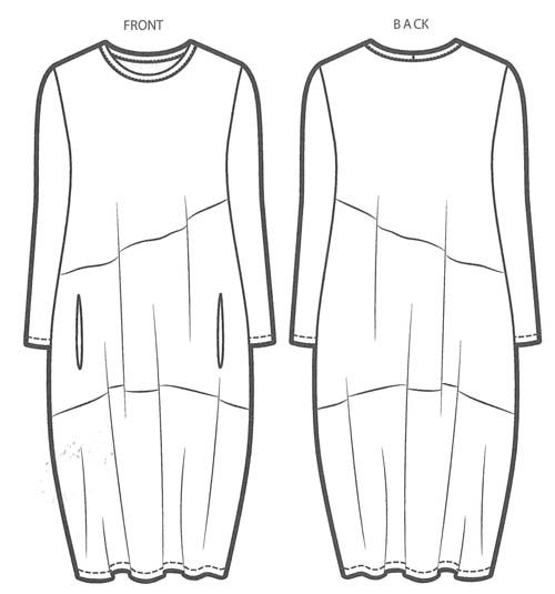 Refresh your wardrobe with this sophisticated dress of the moment. The asymmetrical lines create a soft cocoon shape and the optional slit pockets are a great design feature which sets this mid length, long sleeved dress apart.