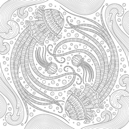 - 30 oversized colouring pages showcase complex mandala designs that feature whales, dolphins, shells, starfish, manta rays, sea turtles, jellyfish and so much more