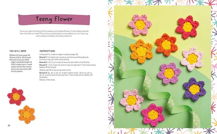 - 25 crochet patterns: a range of quick makes that you can create in under an hour, including flowers, rainbows, stars, hearts, smiley faces, a sunshine and more