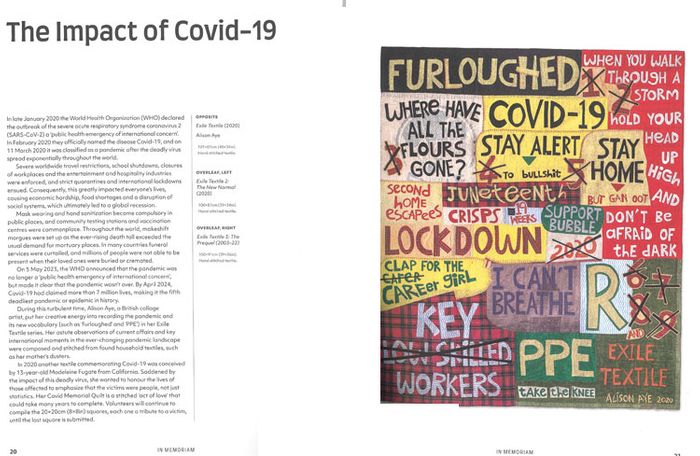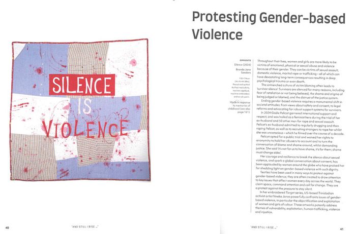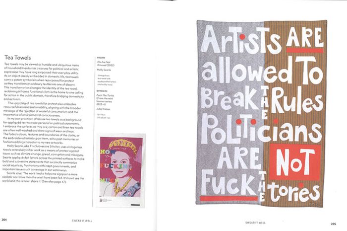 The book is thoughtfully illustrated with examples that include heavily embroidered suffragette and trade union banners, the knitted pussyhats of the 2017 Women’s March, protest textiles from the Guerrilla Girls, Pride flags that celebrate the LGBTQ+ community and the vast variety of textile art in support of the Black Lives Matter movement. It also covers the rich history of fine art textiles with a political theme, such as Judy Chicago’s iconic 1970s installation The Dinner Party, and includes interviews with prominent activist artists that give further insight into the way everyday materials can be repurposed to create arresting political art.