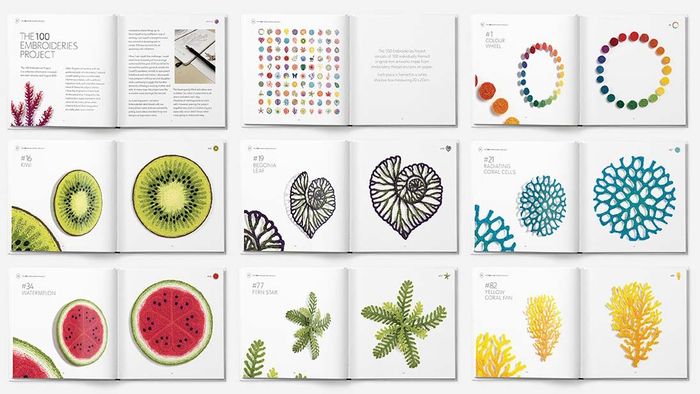 Here is a beautiful record of ‘The 100 Embroideries Project’ from 2020. All 100 embroideries have been printed to scale in chronological order, with additional angled and detailed views of each piece.