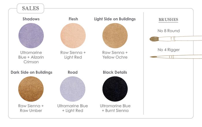 At last, a compact and portable box of color palettes for all your mixing needs in painting city scenes.