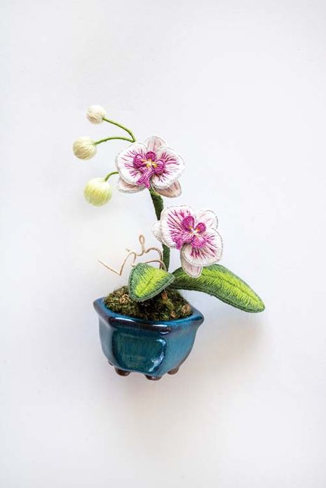 Stitch lifelike butterflies, dew-kissed leaves, vibrant flowers and charming animals that seem realistic enough to lift off the fabric. Or, skip the hoop completely: display your two-sided tree frog in a glass frame and your miniature orchid in a ceramic pot! With innovative combinations of beading, thread painting, wires, felting, fabric manipulation and more, you’ll soon see that there are no limits when creating with stumpwork embroidery!