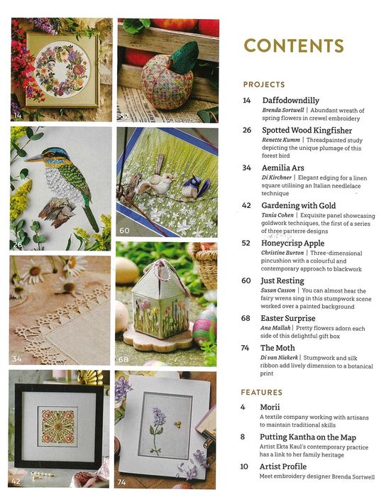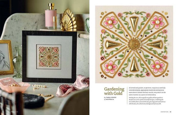 - Gardening with Gold by Tania Cohen: exquisite panel showcasing goldwork techniques, the first of a series of three parterre designs