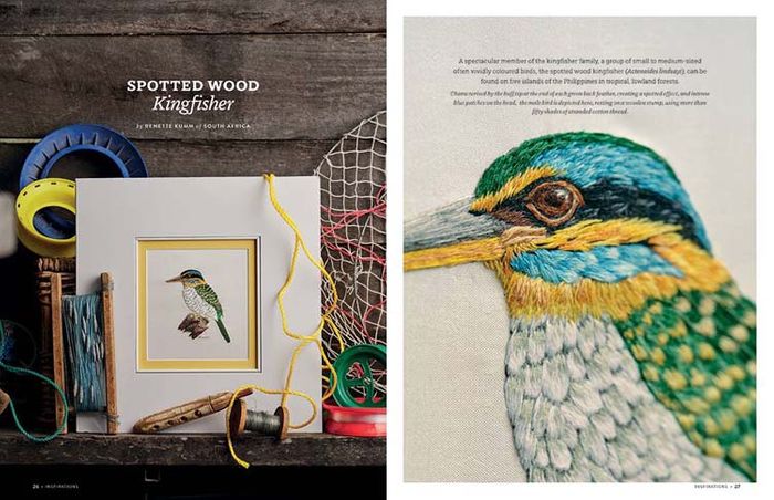 - Spotted Wood Kingfisher by Renette Kumm: thread-painted study depicting the unique plumage of this forest bird
