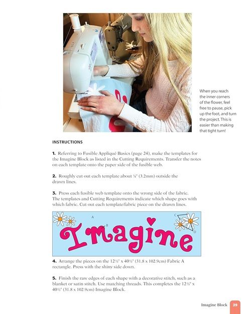 - Complete appliqué alphabet with easy-to-follow appliqué instructions