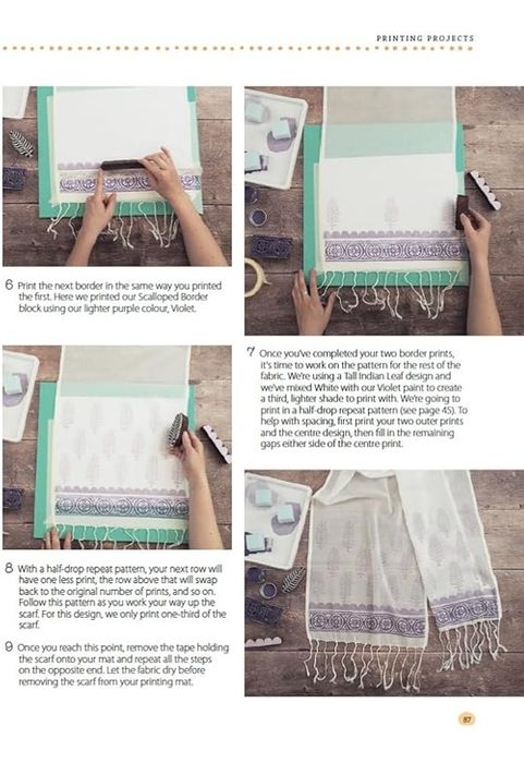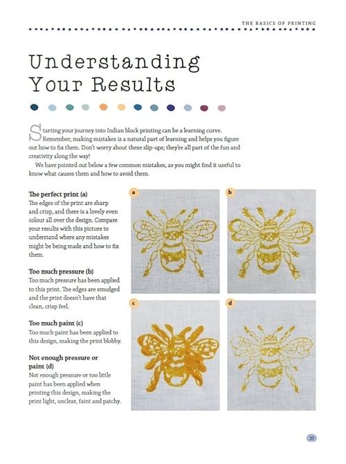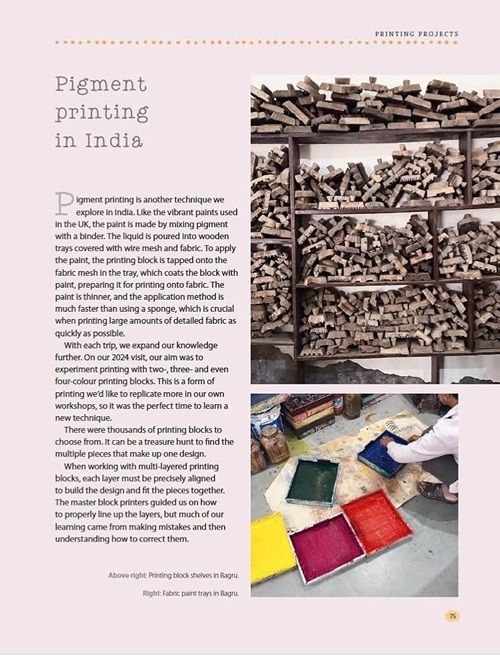 Colourful photographic sections are woven into the text, providing details of the authors’ visits to block carvers, printers and dyers in the Jaipuri villages of Sanganer and Bagru, and how these influences are applied back in their own UK studio. They share with you how Indian block printing is more than just an art form it’s a conscious and creative way of living.