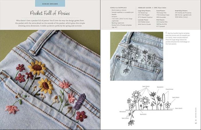The book is thoughtfully organized to guide you every step of the way, from the basics of embroidery to more intricate designs. It starts with a comprehensive stitch guide, introducing essential techniques like the backstitch, satin stitch, French knots and more. From there, you’ll move on to a collection of more than 30 embroidery projects, each with step-by-step photos and instructions to ensure success.