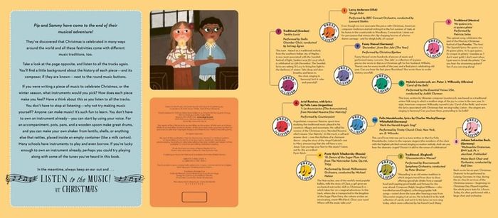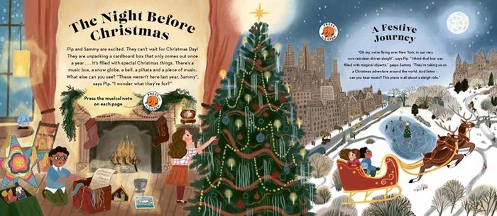 Join Pip and Sammy as they travel the world, listening to the most famous pieces of Christmas music. Meet the composers who dreamed them up and set the tone for Christmas for hundreds of years. From the exciting Sleigh Ride, to the reflective Sankta Lucia in Sweden, to the exultant Hark! The Herald Angels Sing, beautiful sound clips bring the orchestra, choirs and Wassailers into vivid life at the touch of a button in this beautiful book, perfect for the run up to Christmas.