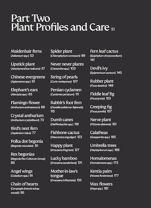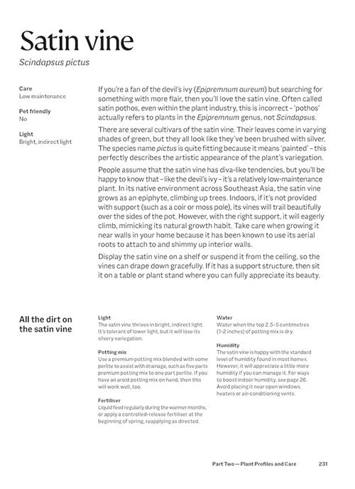 In addition, the 'Houseplants 101' chapter covers general tips on lighting, potting mix, watering, fertiliser, humidity, pests and diseases, buying plants, hydroponics and pots and planters. There's a heavy focus on troubleshooting with diagnostic flow charts, allowing you to identify and resolve plant problems, even for species not covered in the book.