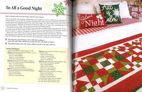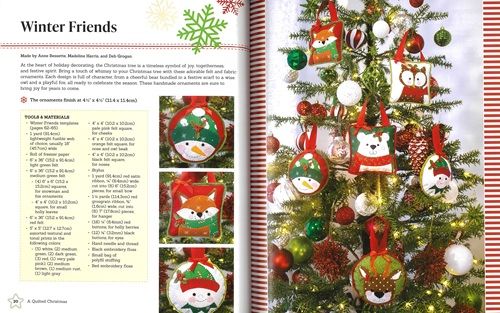 - 16 holiday-themed projects including quilts, runners, wall hangings, pillows, placemats and more