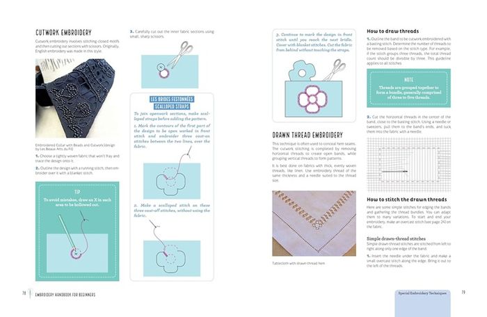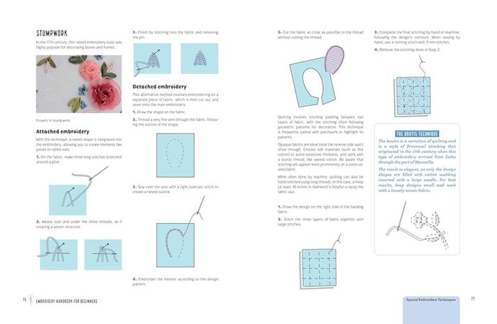 It starts with a detailed overview of selecting fabric and thread, preparing materials, transferring designs and mastering key techniques. At its core, the book offers clear instructions for 25 common stitches and their variations, each supported by easy-to-follow diagrams.