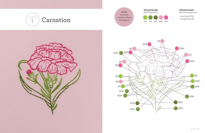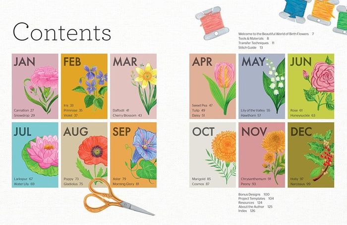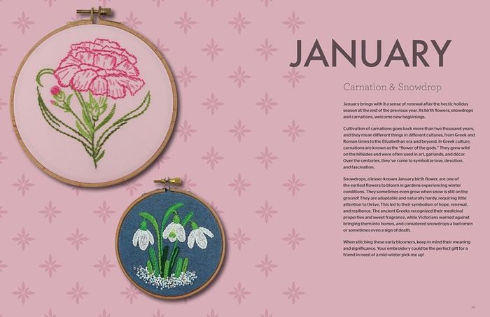 - 26 unique birth flower embroidery patterns: Each project highlights a different birth flower, providing a year-round collection of floral designs.