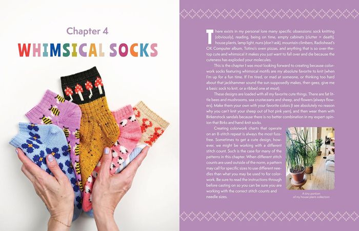 Summer Lee offers a fun new collection of patterns for making socks in every shape and size, all in her signature palette of neon bright colours