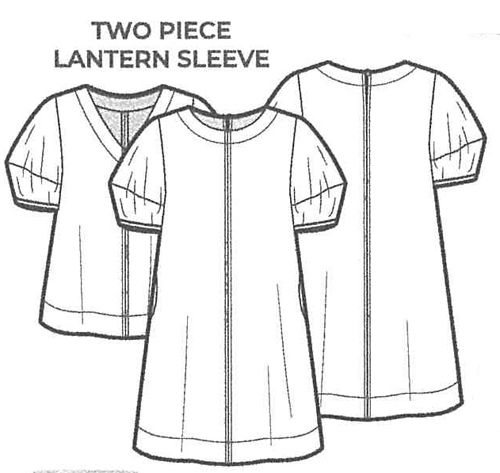 The Zalia Extension sewing pattern features a v-neck frill option and sleeve choices include full length or short gathered sleeves, two-piece lantern sleeves, pintuck sleeves, or frill sleeves. An optional underarm gusset provides extra coverage.