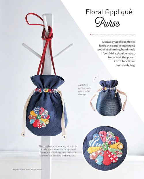 The book contains projects for all skill levels, so you can start with simple, beginner-friendly drawstring pouches and work your way up to larger bags and purses. These drawstring pouches are perfect for storing cosmetics, craft supplies, jewellery and other odds and ends. You can even use them as one-of-a-kind gift bags for small presents! The larger bags make wonderful purses for both travel and everyday errands.