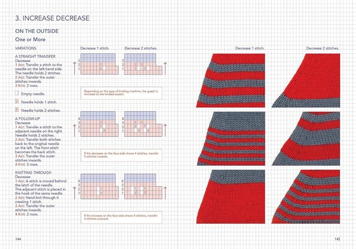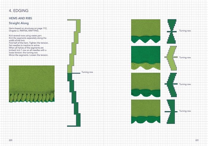 This handbook addresses advanced topics like shaping 2- or 3-dimensional forms, creating volume and adding structure to knitwear. It covers techniques for shaping stitches on or off needles, variations in edging and design methods using graphs, formulas and technical drawings. The book includes ingenious alternative solutions across its four chapters, each with different yarn colours and specific languages.
