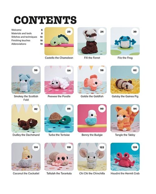 Each project contains detailed, easy-to-follow patterns, stunning photographs and helpful hand-drawn charts to guide you from the first loop to the finishing touches. There is also a techniques section explaining every step needed to make these cute pet pals. Projects include the most popular pets such as dogs and cats, as well as more unique animals such as chinchillas, snakes and tarantulas.
