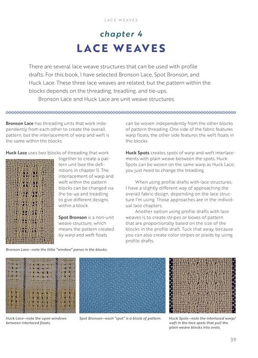 Profile drafts are drafting “shorthand” for weavers, allowing them to create one fabric design and translate it into many weave structures. but many handweavers do not know how to use the drafts. This is the first book dedicated entirely to this key weaving tool.