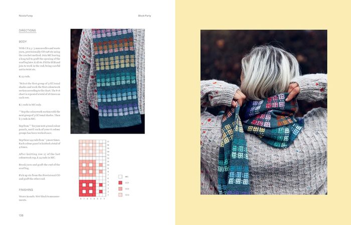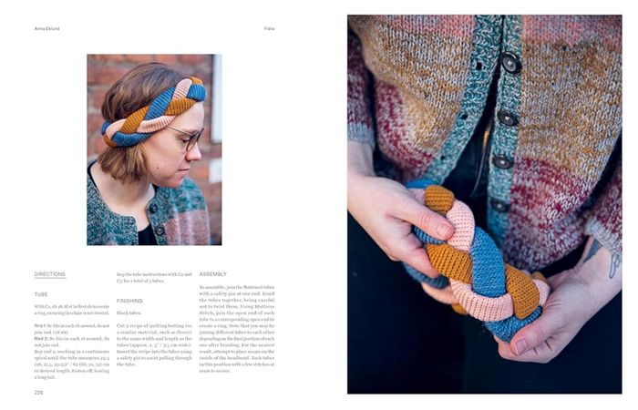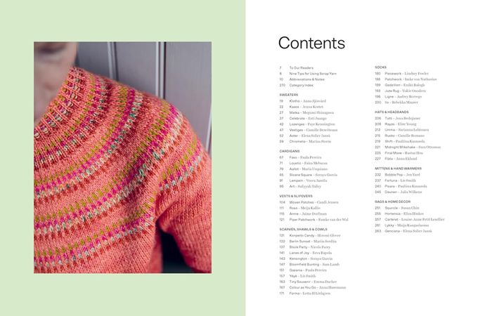 Some designs in the book are made entirely from scraps, while others incorporate them as an eye-catching design element. In addition to knitting, there are also a few crochet pieces. Working with scrap yarn is fun, rewarding, and eco-friendly: it saves money, reduces waste, and frees up space in your yarn stash! Each project is unique, adding a playful and personal touch to the making process.