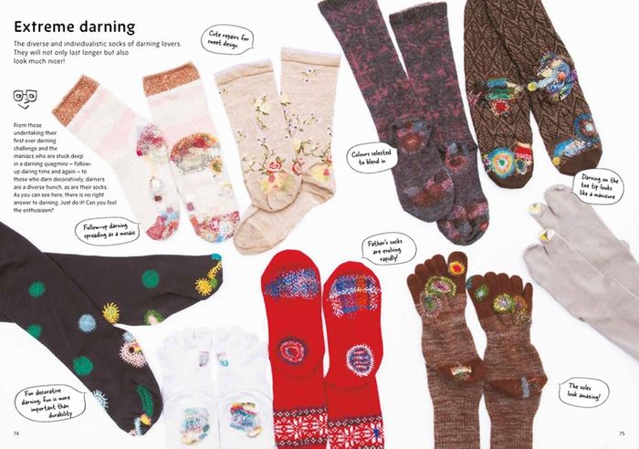 Darning Socks contains a collection of ideas and full step-by-step instructions for applying visible mending to socks, making them stay in use and keeping them out of landfill.