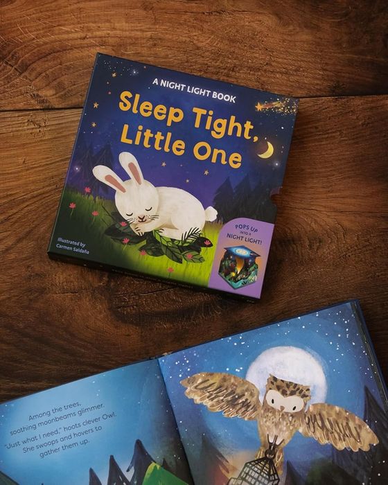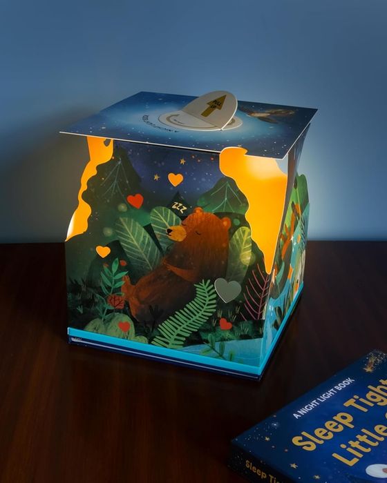 Make bedtime magical with this story book that pops up into a comforting night light! Read the sleepy tale of four adorable forest animals, then pull up and twist the cover to transform into a pop-up paper night light with a gentle glow.