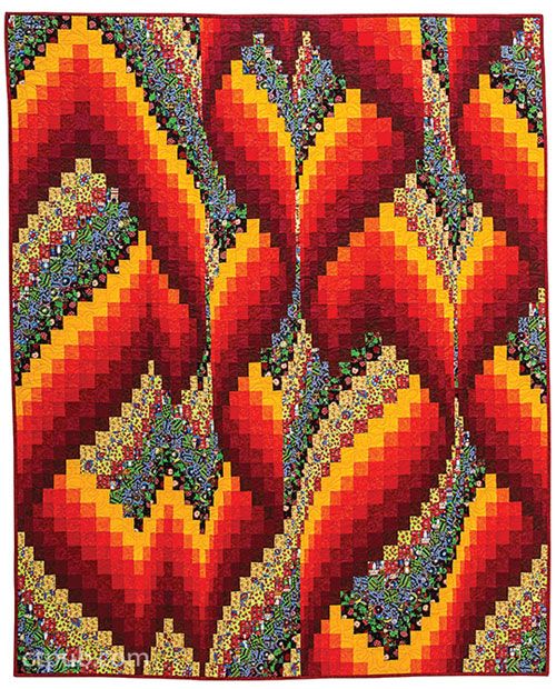 Slice up your stash – novelty fabrics and even ugly fabrics look good when cut up for Bargello piecing. Large-scale quilts look spectacular on a bed or on the wall.