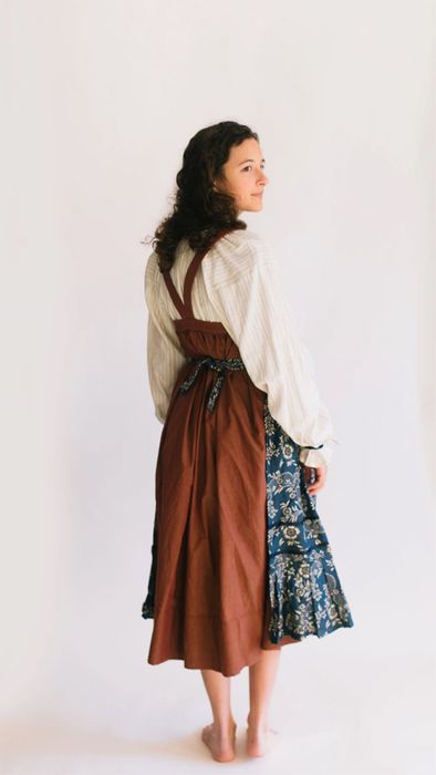 A complete ensemble from Old Russia that includes jumper, blouse and apron, along with options for lace and embroidered embellishment. Wear the jumper by itself as a sundress or combine with other pieces for a variety of looks. Pattern includes historical information about Russian peasant costume and instructions for traditional punch needle embroidery.