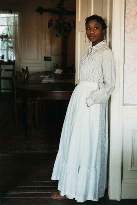Worn by the stalwart women who conquered the 19th century American prairie, this flowing dress was traditionally worn with a practical apron. With or without the apron, mid-calf or ankle length, the dress is feminine and comfortable. Instructions for vintage embroidered finishing touches are included.