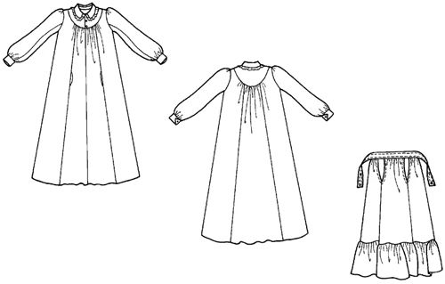 Suggested fabrics: For the Dress, choose soft fabrics such as calico, gingham, muslin, lightweight cotton, rayon or wool challis. For the Apron, choose light or medium-weight cotton such as gingham, broadcloth or muslin.