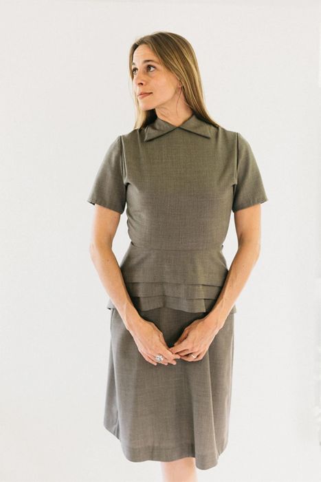 This practical dress uses fabric economically, yet still looks chic and trendy. Features round neck with collar points and peplum cleverly cut on the straight grain but with the slimming look of a bias cut. Or with buttoned front, flounce collar and sleeves, and eyelash pockets for a more casual look.