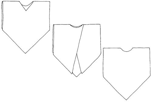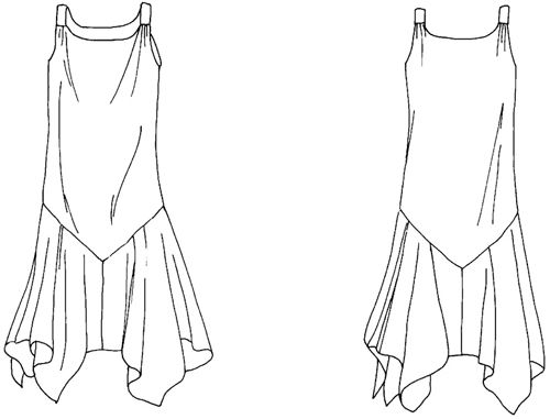 Suggested fabrics: Lightweight and/or sheer silk, rayon, polyester, novelty velvet, jacquard or brocade. The dress skirt is attractive in multiple layers of chiffon or georgette. Sheer striped fabrics create a nice graphic effect in the Crossover Tunic.