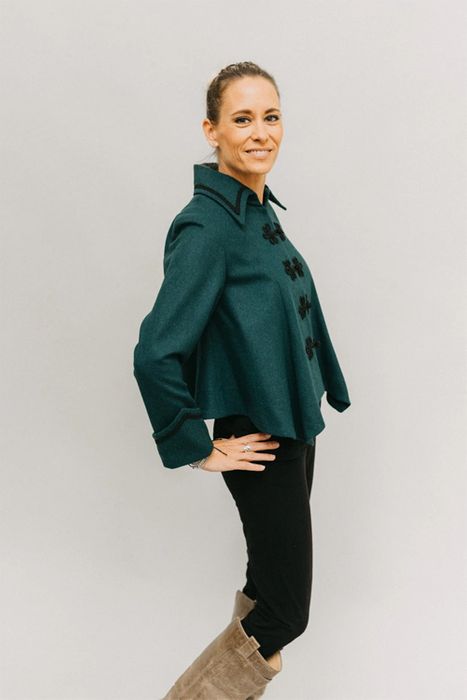Suggested fabrics: Lightweight wools and wool blends; wool crepe, basket-weave, worsted, gabardine; suit-weight and other medium-weight silks; medium-to-heavyweight rayons. The design of this suit is meant to be somewhat soft and fluid, but cottons and linens can be used if desired, for a more structured result.