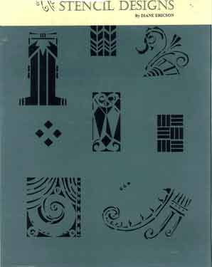 The stencils shown are laser-cut on Mylar and are especially designed for use on fabric. They provide a collection of interesting shapes that can be interpreted in many ways. Just mix an acrylic paint with a fabric medium and use sparingly. Iron for two minutes to set the paint.