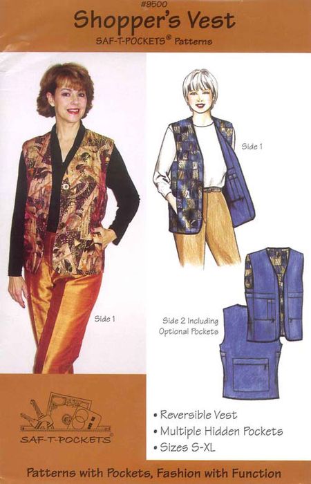 Loose-fitting with patterns and directions for 10 pockets allows hands free purse free mobility and convenience. Create a one-of-a-kind garment with safe-keeping space for your cash, shopping list, travel documents, comb and lipstick, passport, maps, sketch book and pen. Includes wardrobe plans. Multi-sized: 6 – 20