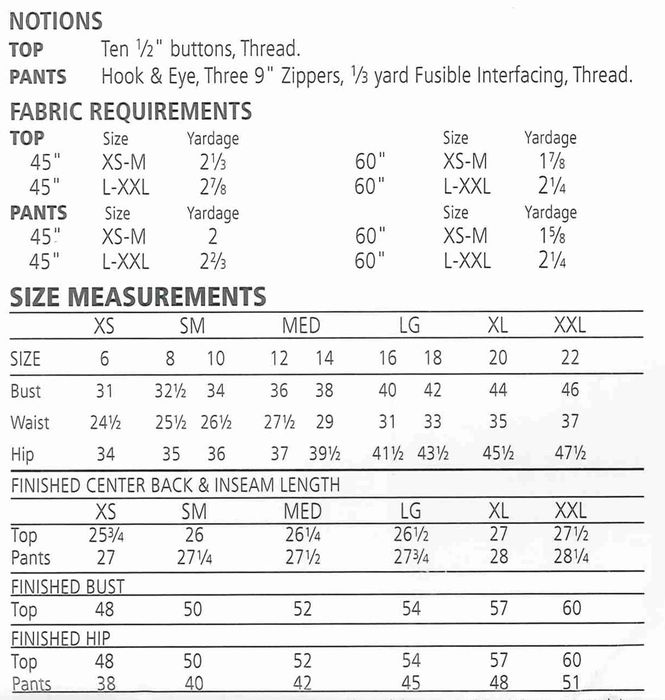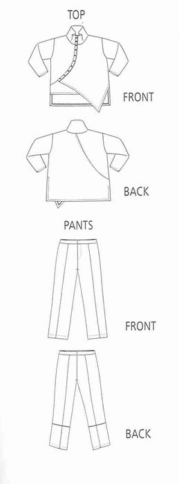 Top Relaxed fit, hip-length top with diagonal button front curving into funnel collar with optional buttons. Asymmetric and offset hemlines. Long tapered sleeves. Fabric Suggestions Light to medium-wt 2- or 4-way stretch knits. Light to medium-wt wovens in cotton, linen, silk, novelty weaves and rayon.