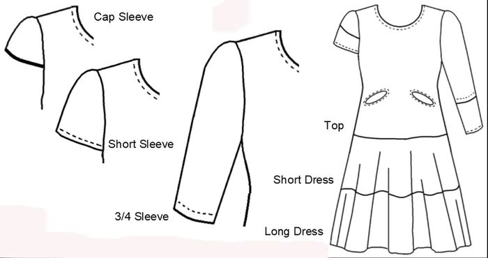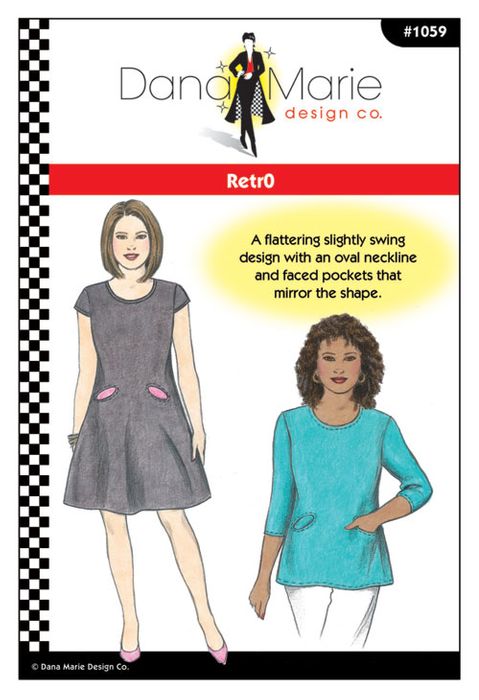 A flattering slightly swing design with an oval neckline and faced pockets that mirror the shape. Unique hemline in three lengths (top, short or long dress) can be made with cap, short, ¾ or long sleeves.