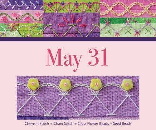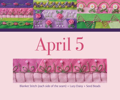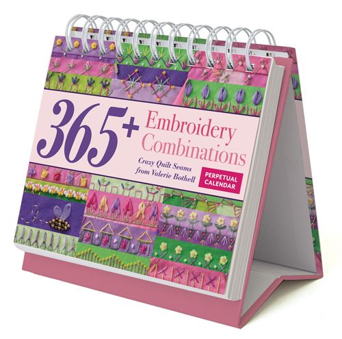 The calendar is a compilation of 365 crazy-quilting designs from best-selling author Valerie Bothell, and each inspirational photo is labelled with the embroidery stitches used, so you can easily recreate the designs.