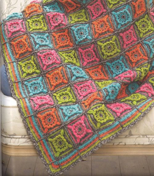 These patterns – a mix of simple and elaborate designs – will add colour and creativity to your home. Blankets are crocheted using yarns in linen, wool, cotton, acrylic and a mix of these compositions in beautiful bright or soft colours.